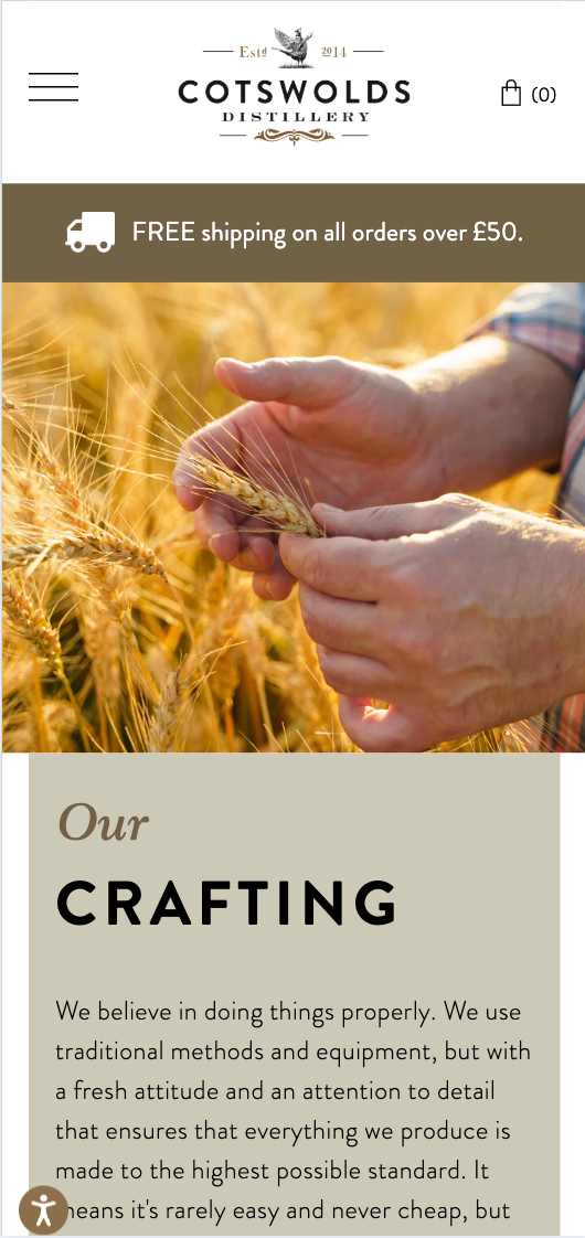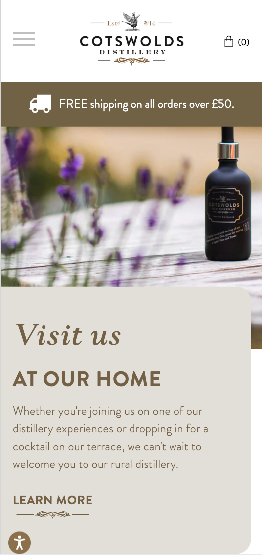 The creative design of the website unified the brand across the entire site. From the homepage to the cookie banner, every part of the site was styled with Cotswolds Distillery’s visual brand elements. The clean, streamlined design meant the site worked particularly well for mobile users, too.