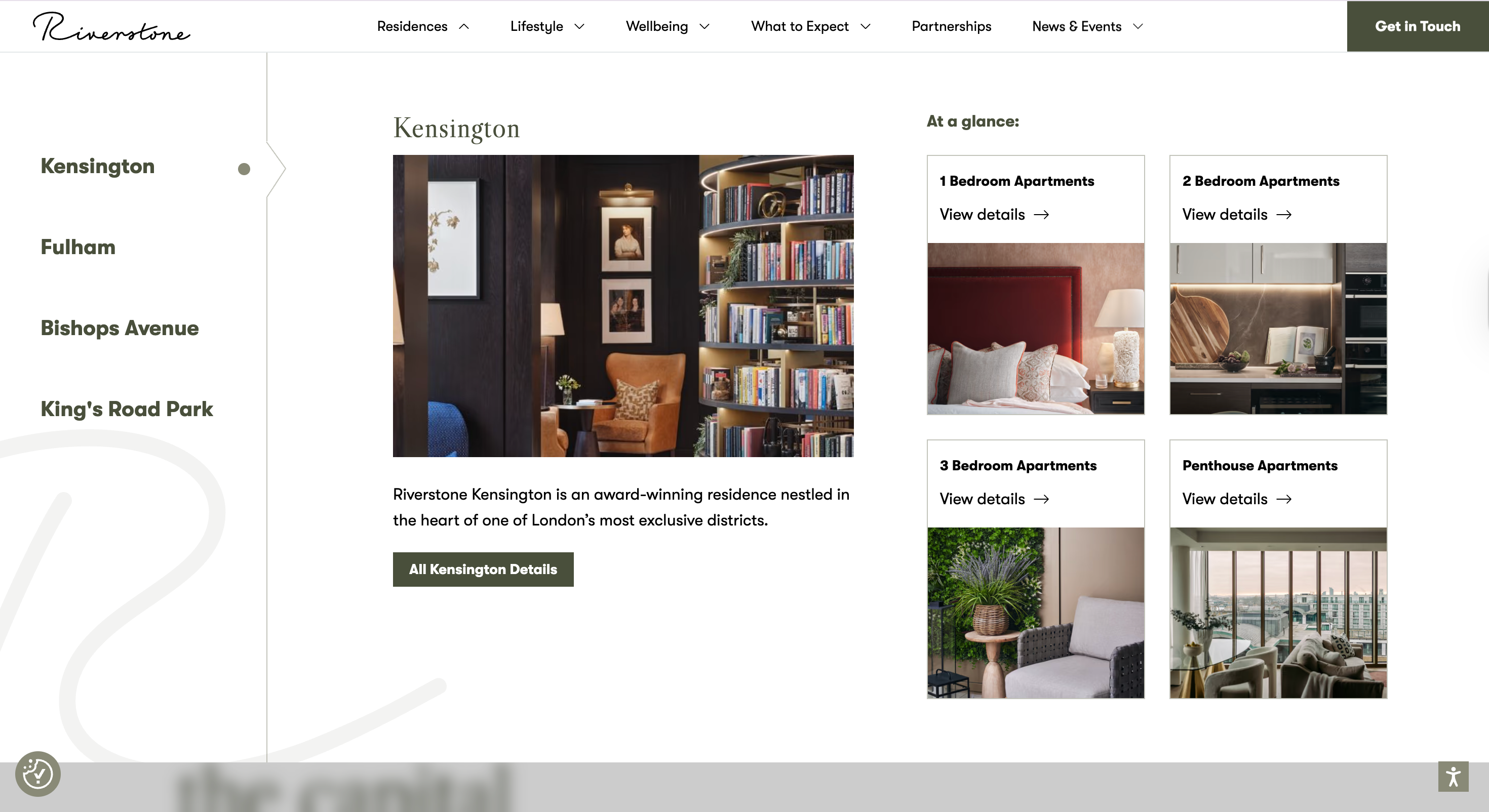 As Riverstone continued to expand its portfolio of luxury later living residences, its digital experience needed to evolve alongside it. The existing website no longer reflected the scale, sophistication or ambition of the brand, and it struggled to support users navigating an increasingly complex choice of locations and residences.