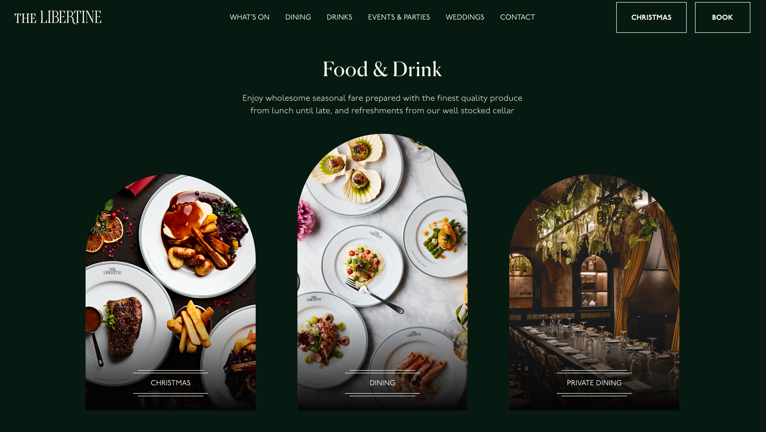 The new Libertine website delivers a visually engaging hospitality UX with a clear navigation structure and a seamless digital discovery to booking flow. Dynamic modules surface current offers and events automatically, while private hire pages provide floorplans, capacities, and immersive imagery to support decision making.