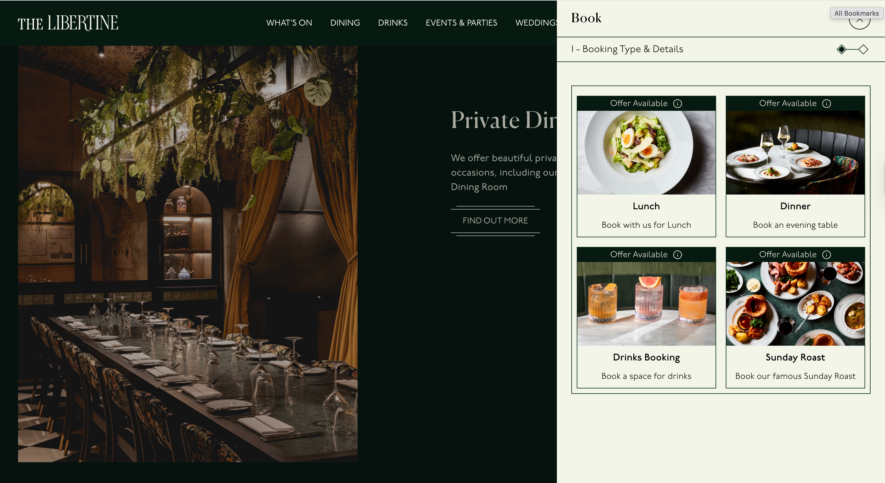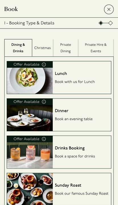 The group’s key objective was to redesign and build a custom front end for the DMN booking flow. This was to enable a seamless journey from discovery to booking while allowing The Libertine to highlight all offers and booking types.