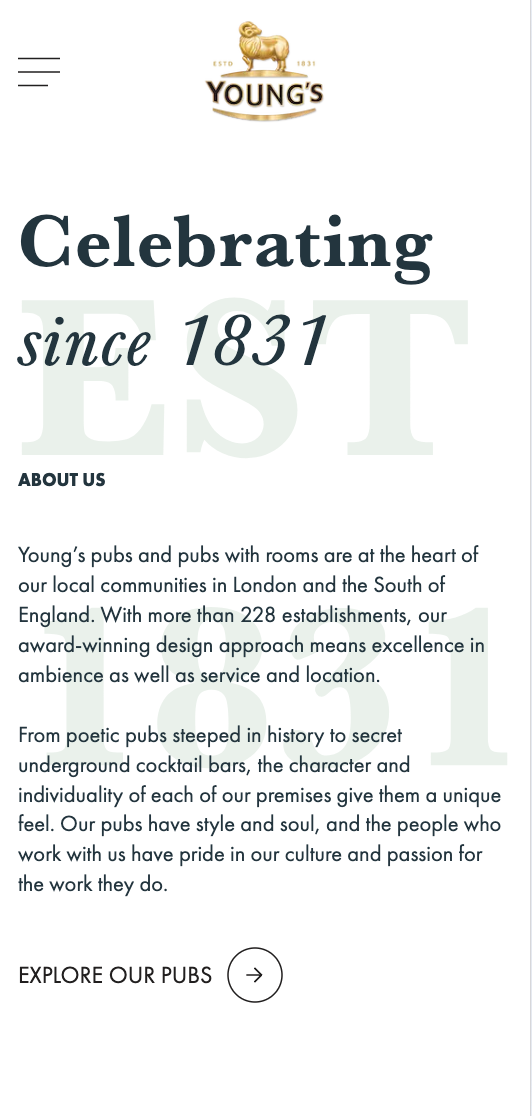 We understand the nuances of the hospitality industry and have tailored our digital strategies to meet the unique needs of each Young’s establishment, from driving footfall to promoting special events.