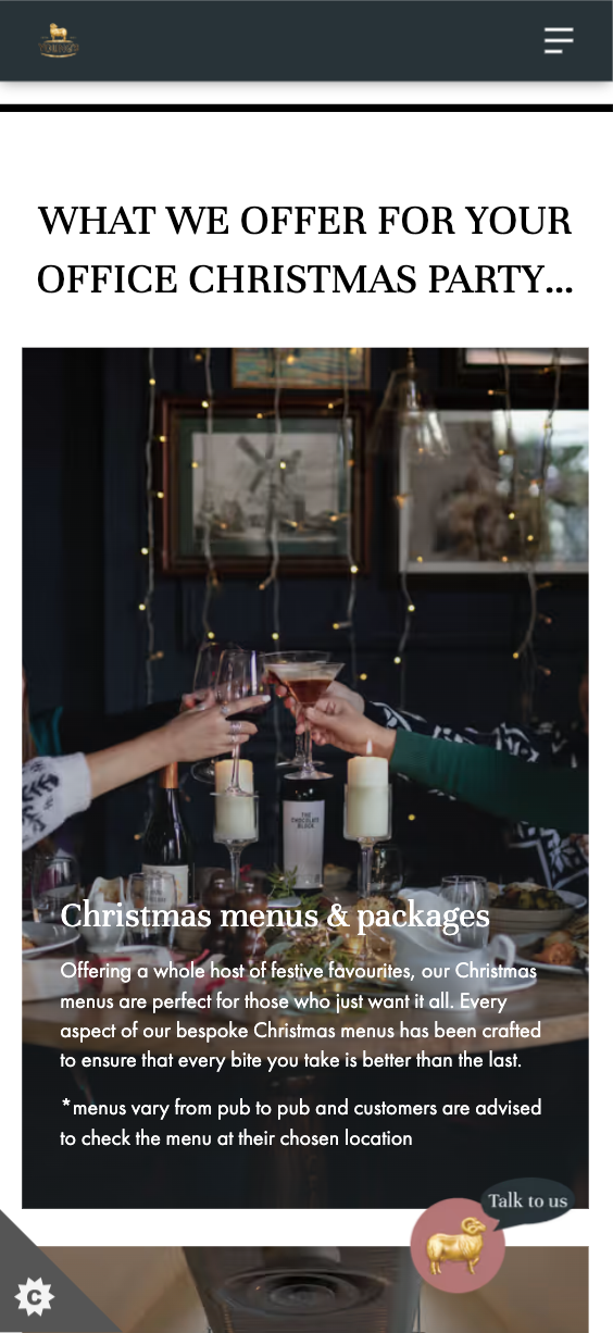 Christmas is a crucial time for the hospitality industry, with vendors seeing a huge surge in bookings over the festive period. Over last year’s festive season, Propeller collaborated with Young’s to launch an impactful Christmas bookings campaign spanning across a range of channels. Customers were encouraged to make online festive booking enquiries at their favourite spot through both the central and local pub websites.